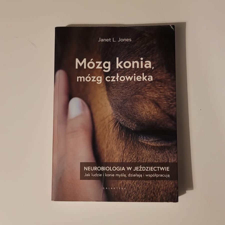 „Mózg konia, mózg człowieka” autorstwa Janet L. Jones wydawnictwo Galaktyka to książka, którą zdecydowanie polecam. Czytało mi się ją świetnie – w dosłownie kilka dni pochłonęłam całość. Na pewno będę do niej wracać. Literatury omawiającej w przystępny sposób odrębność mózgów ludzkich i końskich czy w ogóle mózgu konia jest na rynku bardzo nie wiele. A szkoda, bo to jeden z kluczowych tematów, niezbędnych aby pogłębiać zrozumienie koni, poprawiać ich komfort życia, oraz rozwijać metody szkoleniowe i poziom jeździectwa w ogóle… Niewątpliwym atutem książki jest przystępny język oraz lekkie pióro autorki. Jeźdźcy niezaawansowani jak i po prostu młodsi wiekiem poradzą sobie bez problemu z jej zrozumieniem. Natomiast osoby zaawansowane czy profesjonaliści zyskają neurobiologiczny obraz procesu szkoleniowego.
