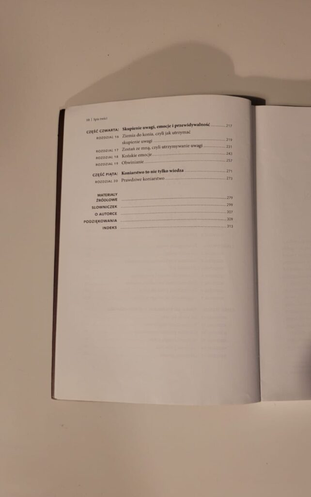Chyba nie ma pozycji idealnej. Mi także podczas czytania rzuciły się w oczy pewne niuanse które są brzydkie i psują całokształt odbioru książki. Tak jak fragment drugi i trzeci czytało mi się świetnie, bo precyzyjnie oddawały zagadnienia jeździeckie. Tych neurobiologicznych nie oceniam bo nie jestem specjalistą, niemniej były przedstawione bardzo czytelnie. Niestety, pod koniec książki wkradł się pewien chaos. Temat skupienia u koni, czy ich emocji jest zbyt obszerny żeby zamknąć go w tak małym fragmencie i stąd pewne uproszczenia powodujące bałagan. Czytając można odnieść wrażenie że autorka trochę się myli i gubi pojęcia. Jednak trudno mi jednoznacznie określić przyczynę tych niedociągnięć ponieważ może być ona bardzo prozaiczna i wynikać z tłumaczenia.