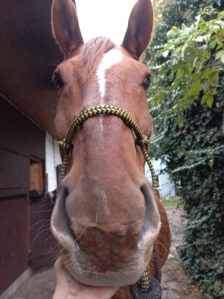 Udało nam się zakumplować na tyle, że młoda wiedziała, że ja to ja i kiedy nie mogłam jej rozpoznać spośród innych gniadych koni (proszę nie komentować) przychodziła sama. Reaguje na imię i wie że jest Happy. Na pastwisku lubiła z nami być – z Alkiem szczególnie bo drapie zdecydowanie lepiej niż ja.