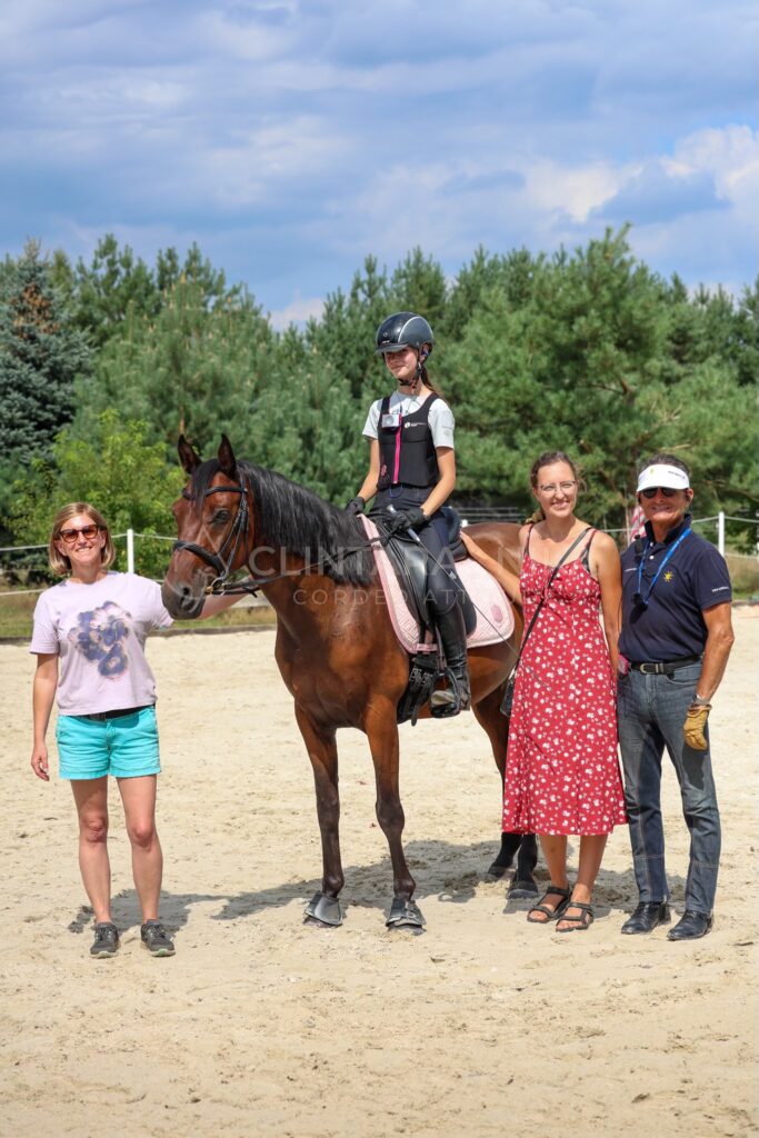 Tak się szczęśliwie złożyło, że Orkan od ostatnich kilku miesięcy pięknie progresuje i wzięcie go na klinikę wyjazdową było doskonałą okazją na utrwalenie pracy w domu. Dodatkowo był to absolutnie PIERWSZY wyjazd Orkana w nowe miejsce, więc celowo wybrałam Cordero Attitude Place, bo jest przyjazne, a jednocześnie mamy namiot, kwarc, głośniki i widownię – czyli trochę rozpraszaczy też. W tych warunkach mogłam na spokojnie wprowadzić Orkana w świat wyjazdów, klinik i nowych miejsc. Mogłam w bardzo sprzyjających okolicznościach pokazać mu, że nie ma się czego bać i następnie oddać go Ani, ponieważ to ona docelowo ma na nim startować. Wszystkie elementy układanki: jeździec, koń, miejsce i trener były idealnie na swoim miejscu więc pojechaliśmy.