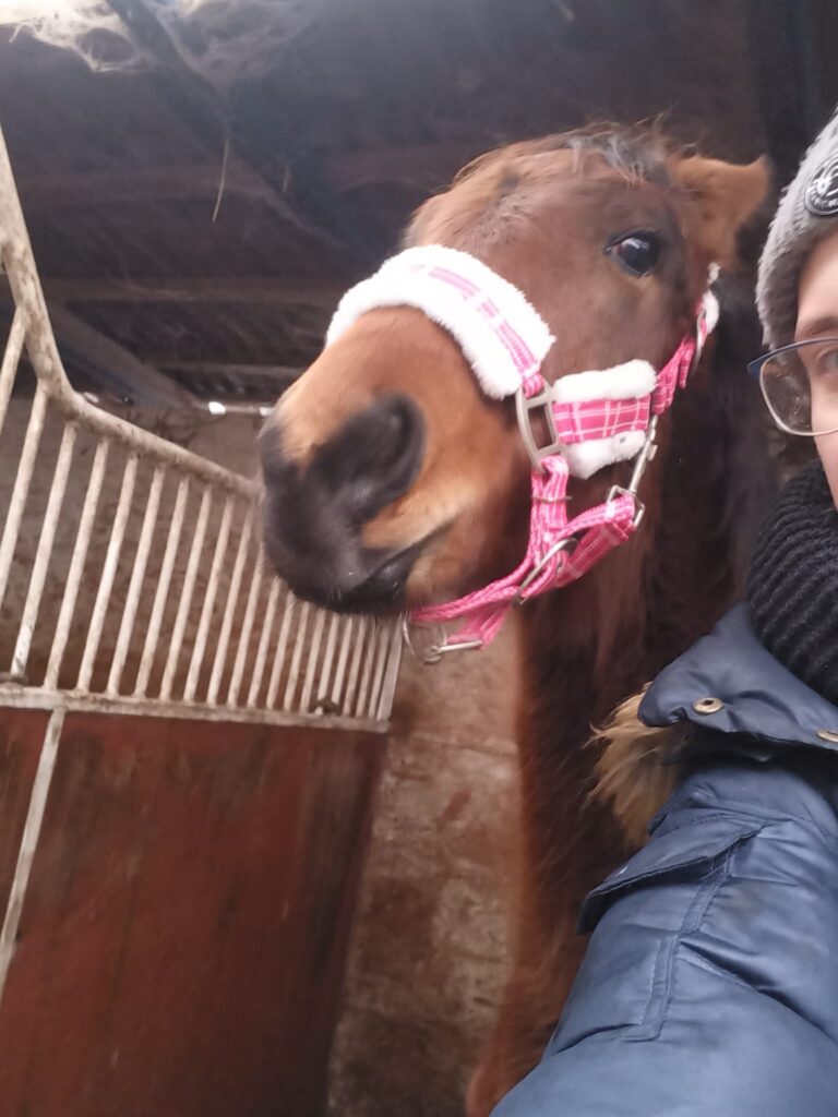 W układaniu sylwetki bardzo pomaga mi yoga dla jeźdźców, na tapecie miałam rozluźnienie wewnętrznej partiii ud, mięśnie brzucha i ramiona. Udało mi się też pomęczyć siebie trochę na lonży – to jest zawsze duże wyzwanie, głównie ze względu na małą liczbę chętnych lonżujących – ale najważniejsze UDAŁO SIĘ! EFEKT BYŁ – większy niż sądziłam bo na ostatnim treningu starego roku dostałam piękne ustępowania. Takie posuwiste równe od zadu przez otwarte łopatki, a jednocześnie na koniu kulkowo zebranym. Trochę tęskniłam za takim uczuciem – bo na bardzo świeżych młodziakach pierwsze ruchy w bok często są raczej nagradzaniem tendencji niż czymś co wygląda ładnie (albo to „coś” wygląda ładnie przez dosłownie ułamek chwili) niemniej na dorosłym koniu – nawet dopiero wracającym do treningów, to jest zupełnie inne i o wiele milsze uczucie … no i cóż.