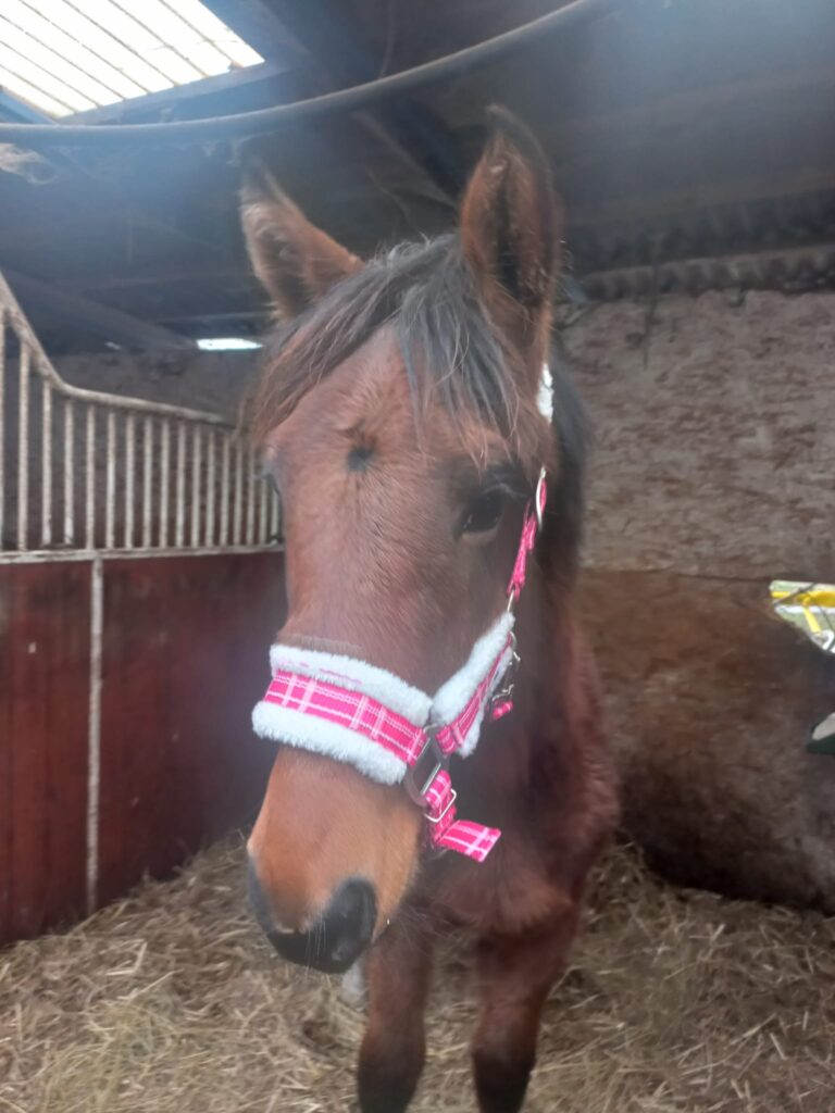 Na pastwisku ma już swoich kumpli, rezolutnie skubie siano i zawołana przychodzi do bramy, się przywitać. Bardzo dąży do kontaktu z człowiekiem – co jest przekochane. Doskonale wie, że Happy End to ona właśnie. Rośnie jak na drożdżach i aktualnie przechodzi fazę – urósł mi zad. Nie piszę, że się odpasła bo chyba wszystko co pochłania idzie we wzrost, ale na pewno dostała błyszczącą sierść. Wyleczyliśmy jej oczy, które na początku trochę ropiały.